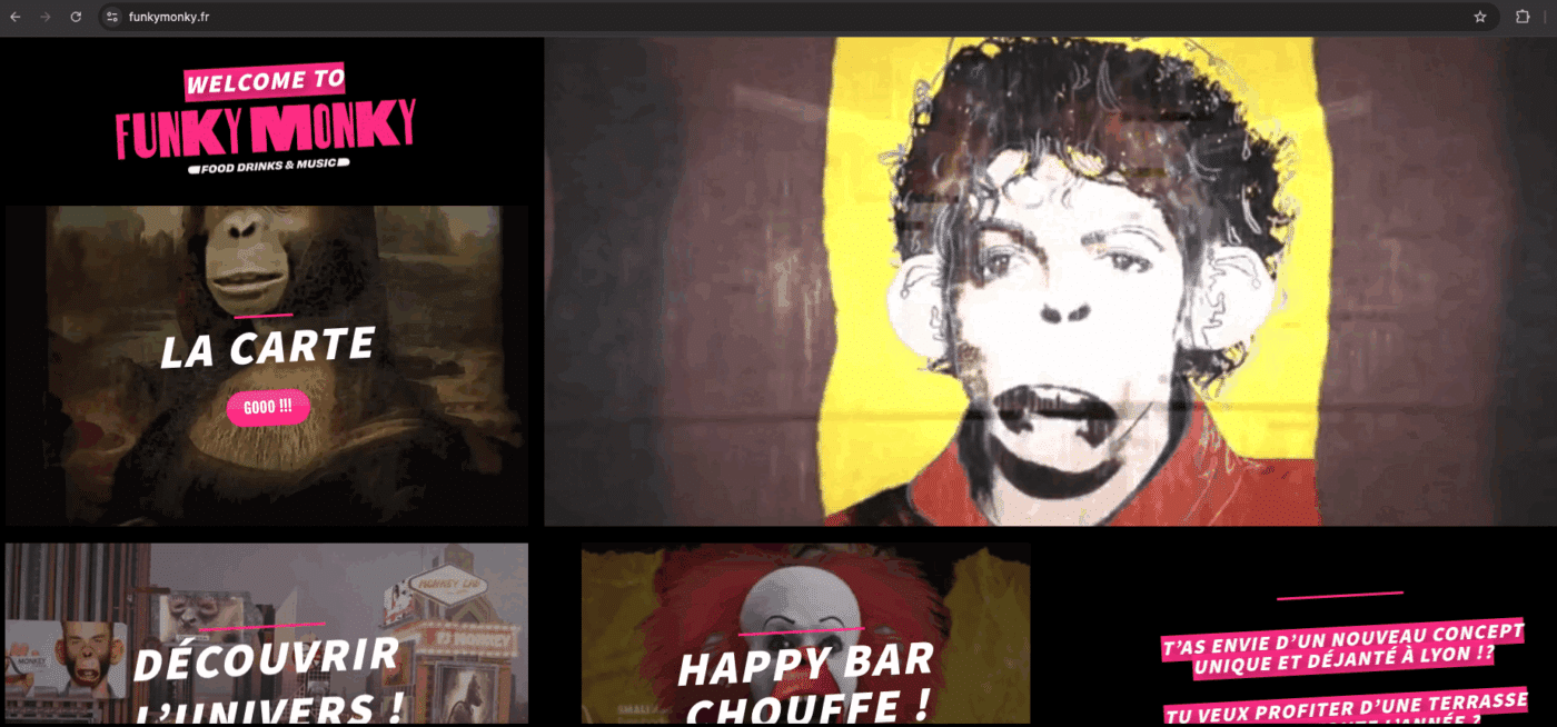 Identité visuelle du site WordPress du restaurant / bar Funky Monky à Lyon